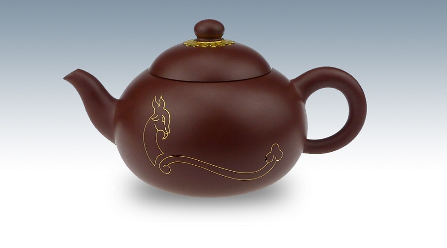 • 鑲千足金紫砂吉祥如意壺