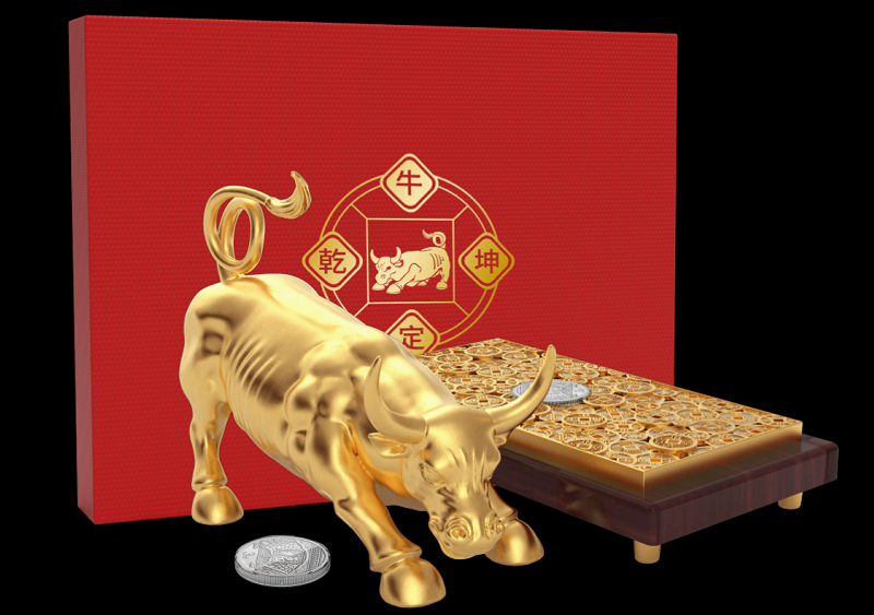 • 牛定乾坤鍍金家居辦公桌擺件